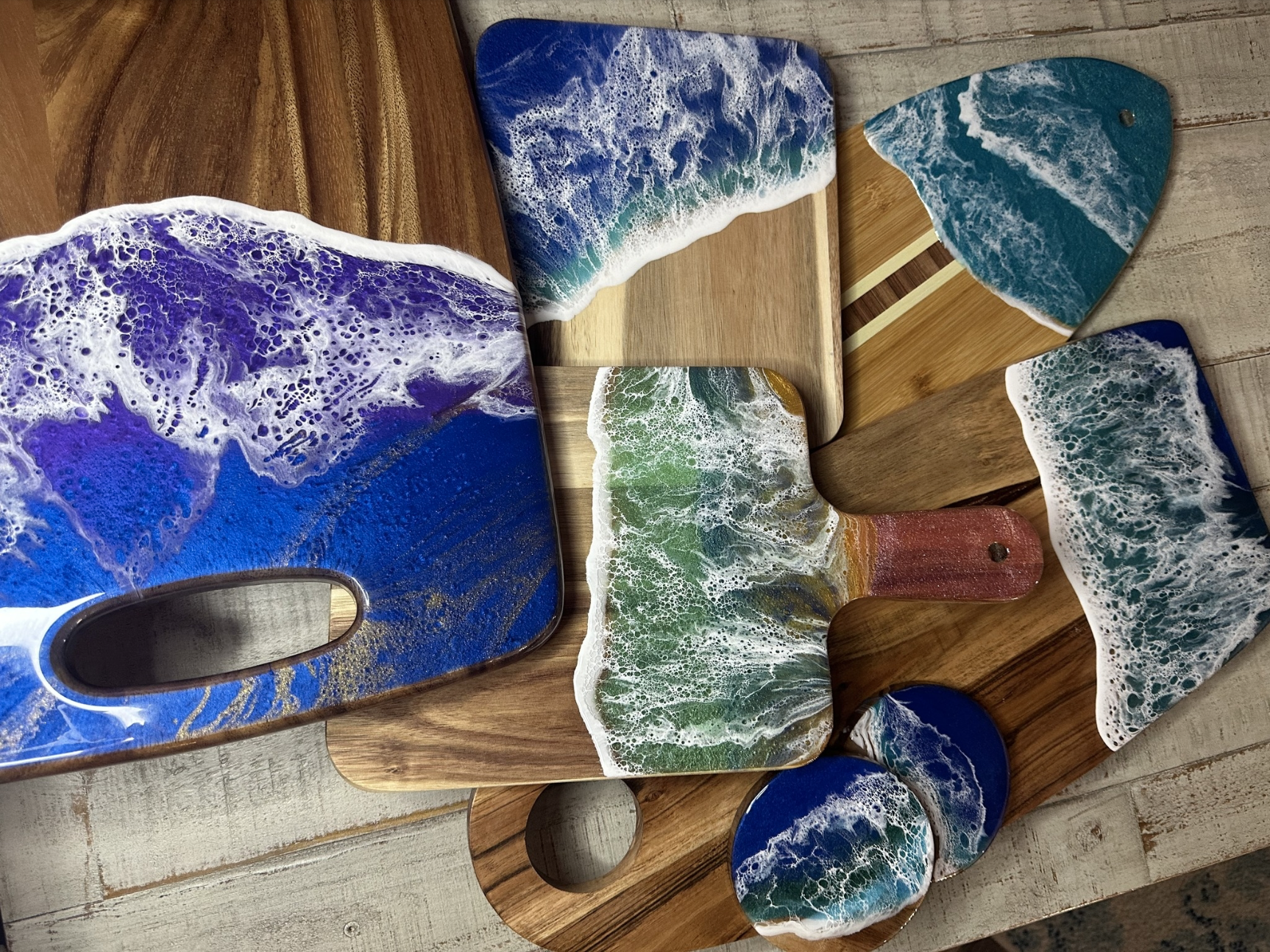 Acacia Wood & Ocean-Inspired Epoxy Cutting Board